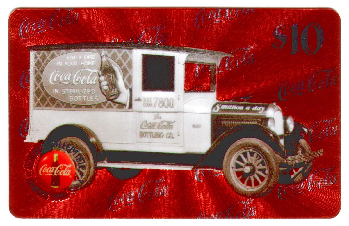 Bright red and white tones dominate the card, reflecting Coca-Cola’s distinctive color palette. The text and logos maintain sharp, clean lines, providing clear visibility and branding identity. The card functions as a collectible item celebrating Coca-Cola’s heritage, particularly its delivery trucks, making it a notable piece for collectors of automotive or beverage-themed memorabilia.