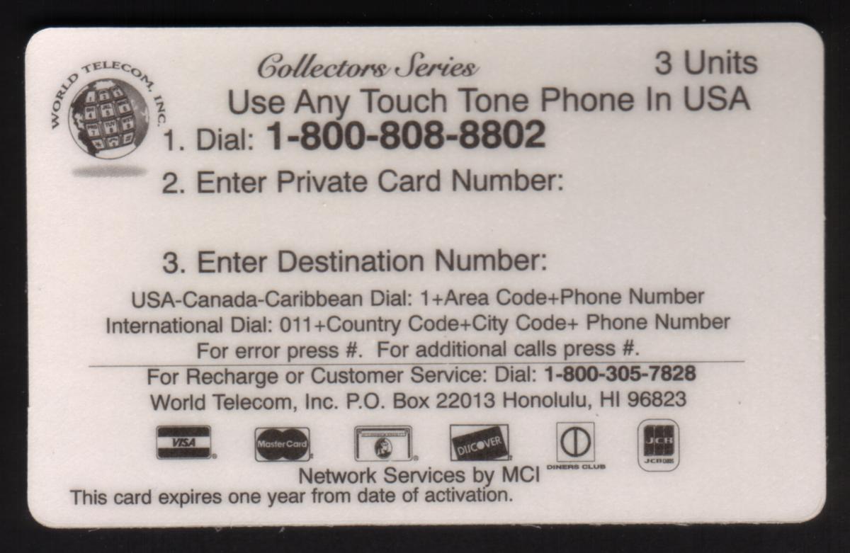 Since we have the world's largest inventory of USA phonecards for collectors, you will not necessarily receive the identical serial/batch/PIN number that we have scanned/pictured.