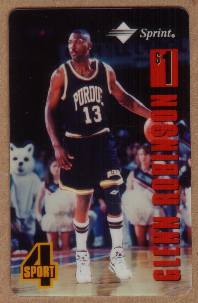 This set of eight collectible Sprint phone cards features prominent athletes from four different sports: baseball, football, basketball, and hockey. Each card displays a vibrant photographic action shot of the athlete with their name printed vertically along the right side in bold red letters. The upper left corner of each card has the white Sprint logo, and the denomination "$1" is presented in a red box. The bottom right corner of every card has a yellow and black "4 Sport" logo, reinforcing the multisport theme.