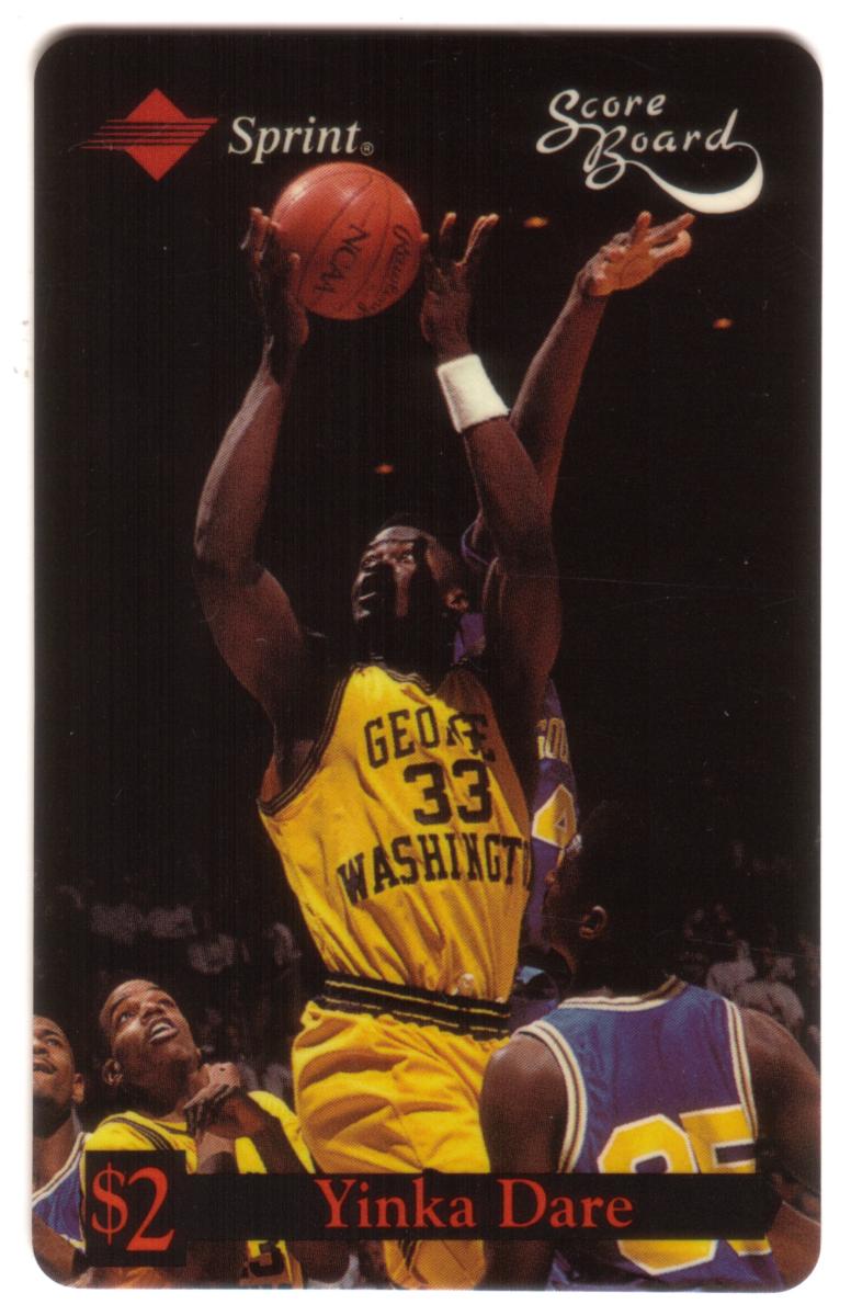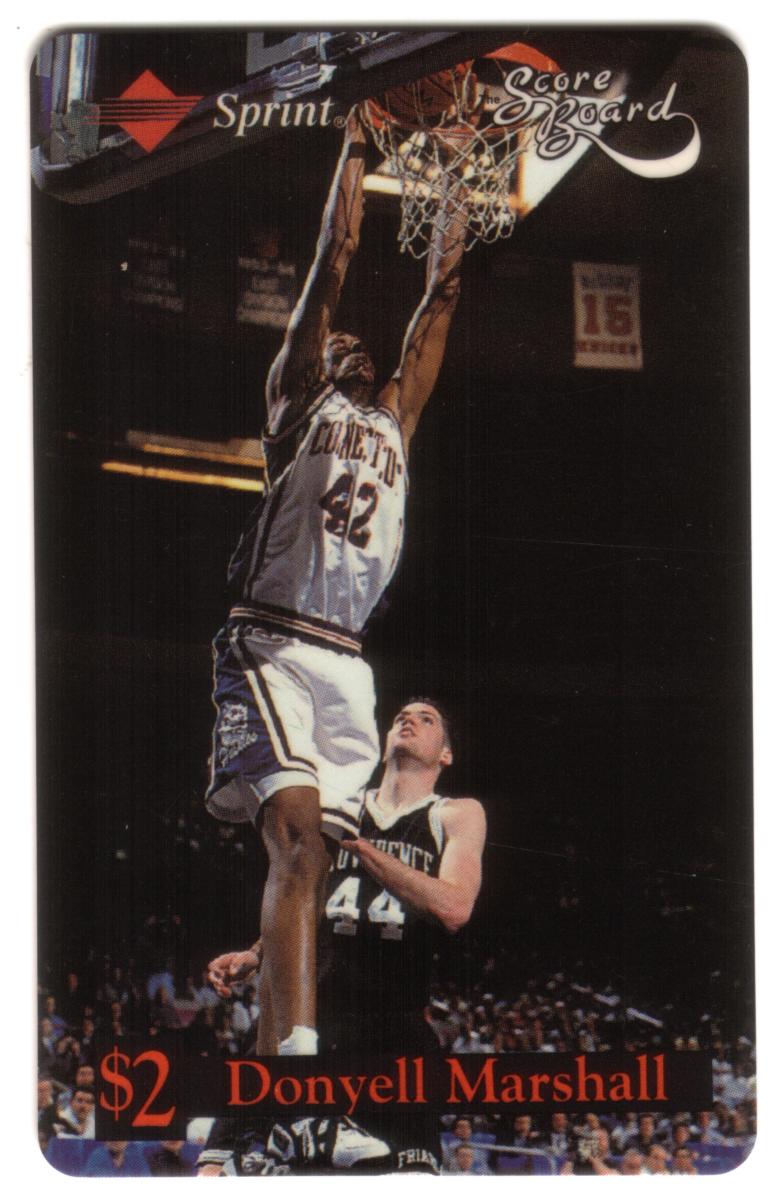These six collectible basketball cards feature prominent college and professional players and are issued by The Score Board Inc. with Sprint as the sponsoring brand. Each card has a $2 denomination prominently displayed on the bottom left corner along with the player's name in red text on a black bar beneath the image. The top of each card shows the Sprint logo on the left and the white "Score Board" logo on the right.