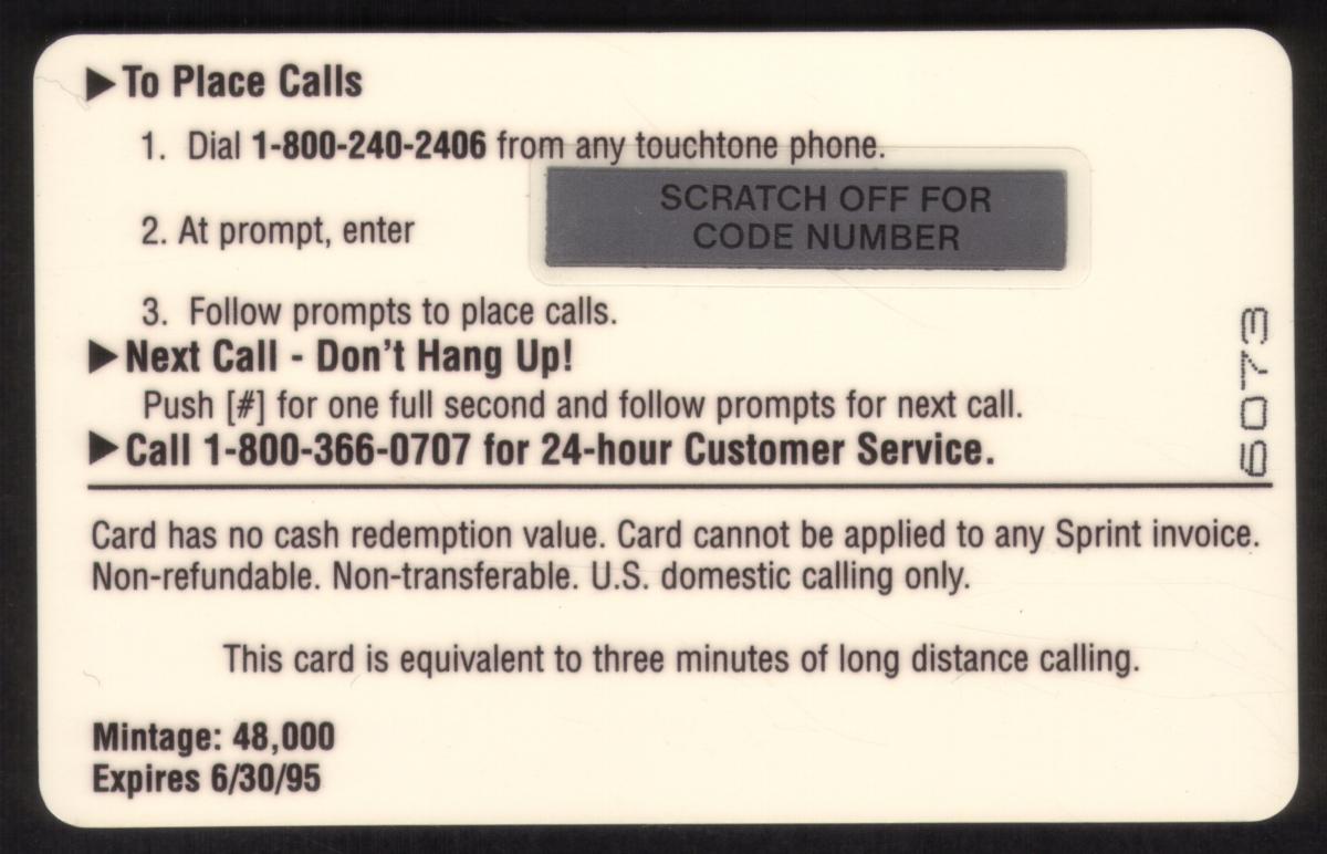 Since we have the world's largest inventory of USA phonecards for collectors, you will not necessarily receive the identical serial/batch/PIN number that we have scanned/pictured.