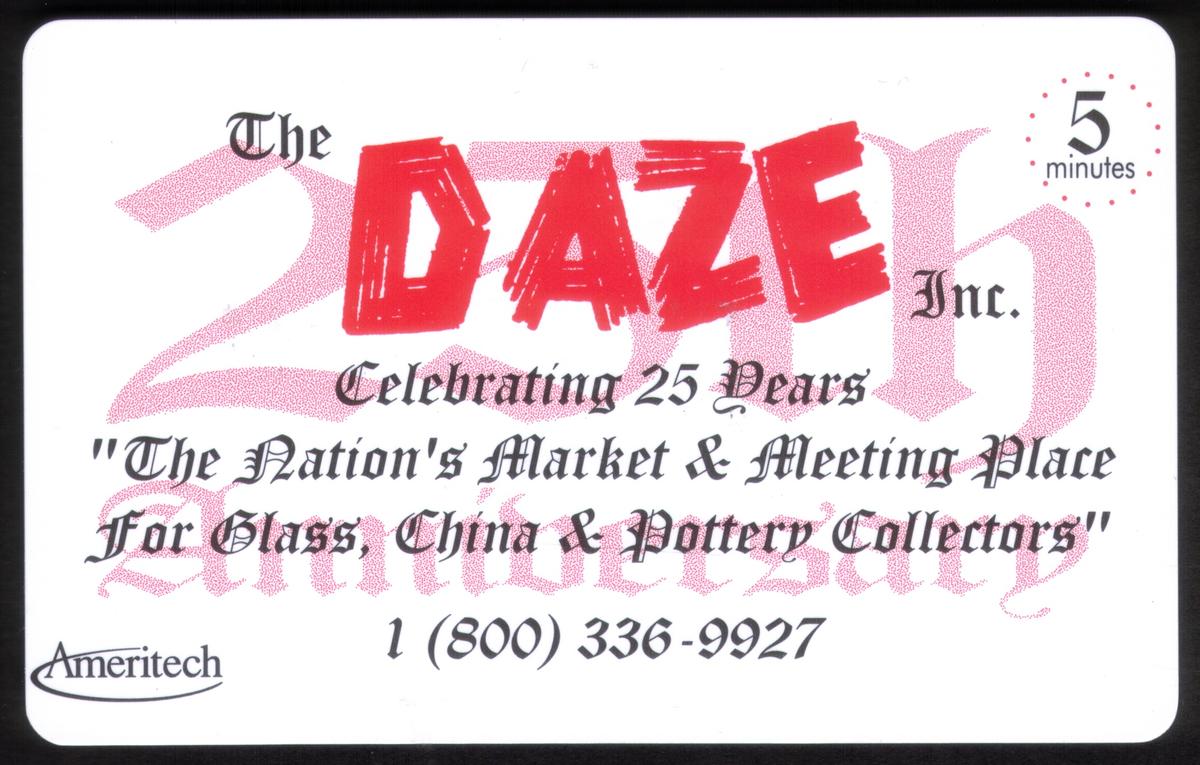 Overall, this card marks the milestone of 25 years for DAZE, Inc. and ties together themes of glass, pottery, and china collecting, with Ameritech’s corporate identity included as part of the presentation.