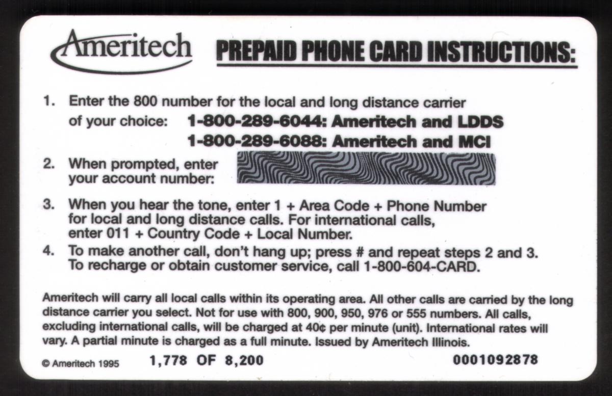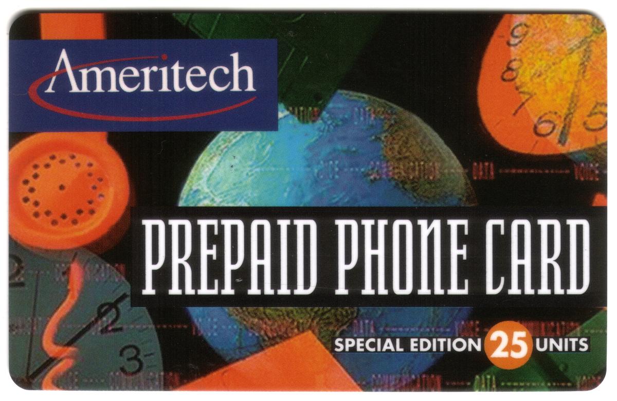 Overall, the design merges symbolic elements related to telephony, time management, and global connection, reinforcing the card’s function as a tool for prepaid phone communication services provided by Ameritech.