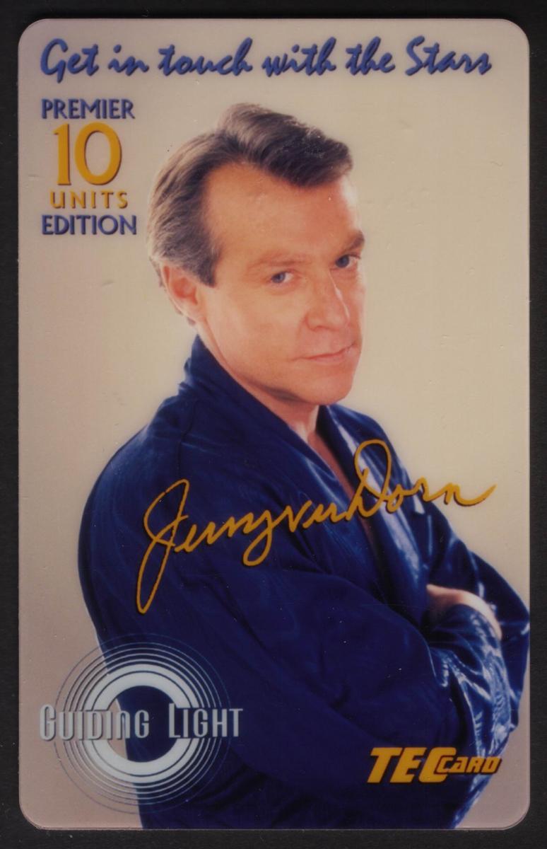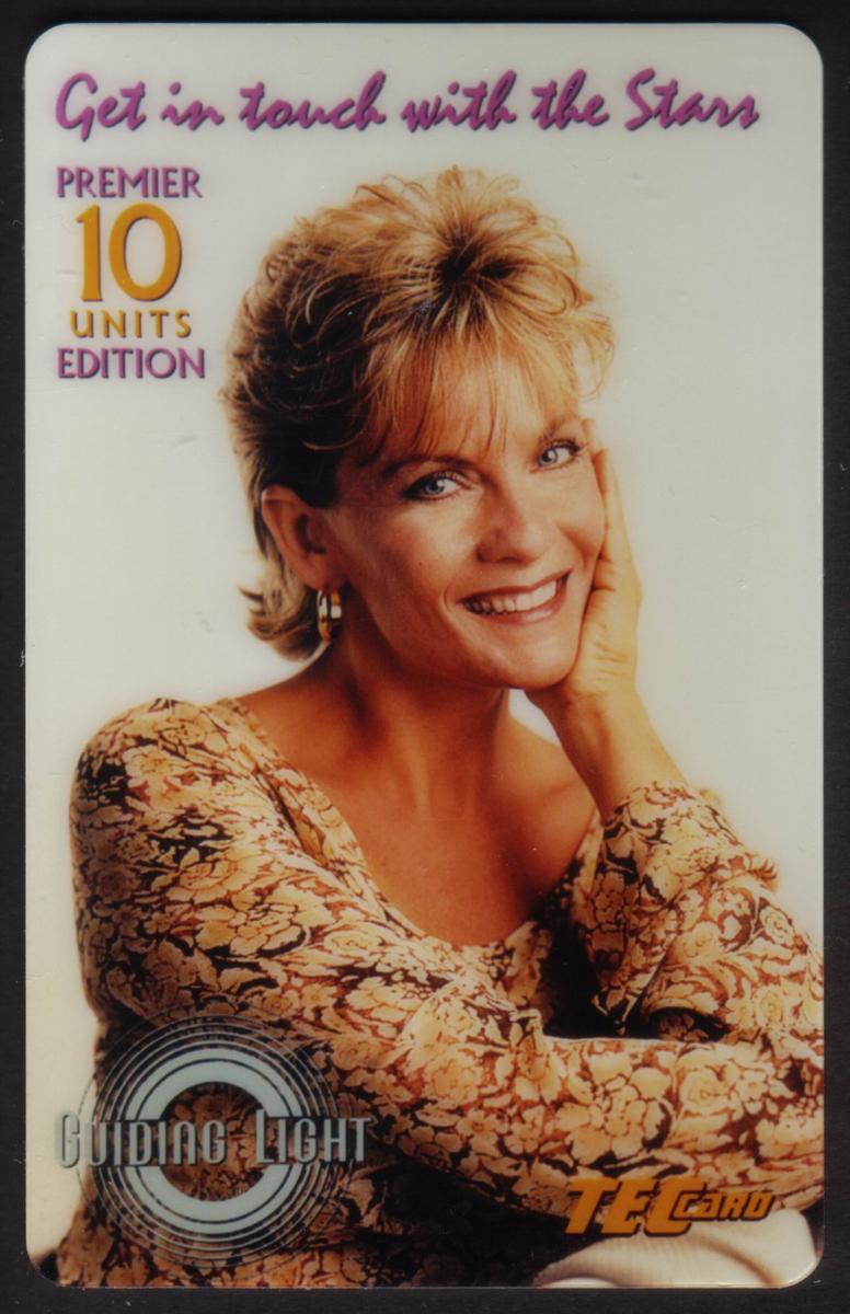 Set of 15 daytime TV memorabilia phone cards featuring Guiding Light actors, iconic characters, romantic themes, and nostalgic portraits with functional prepaid use. |