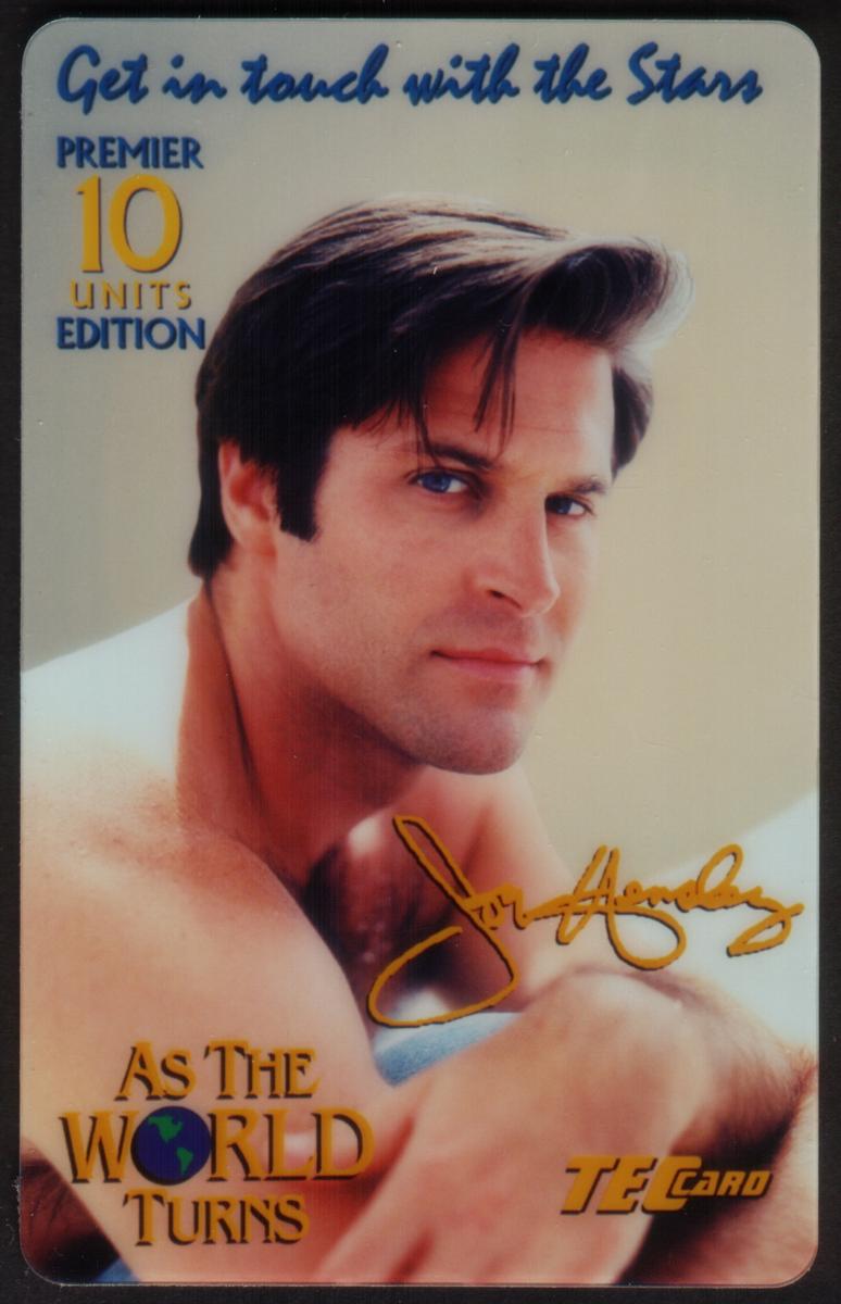 This collectible phone card features Jon Hensley portraying the character Holden on the daytime television soap opera *As The World Turns*. The card highlights the theme of entertainment, specifically focusing on soap operas and daytime TV dramas known for their romance and dramatic storylines. The image on the card includes the name “Jon Hensley” and “Holden,” directly referencing his role on the show.