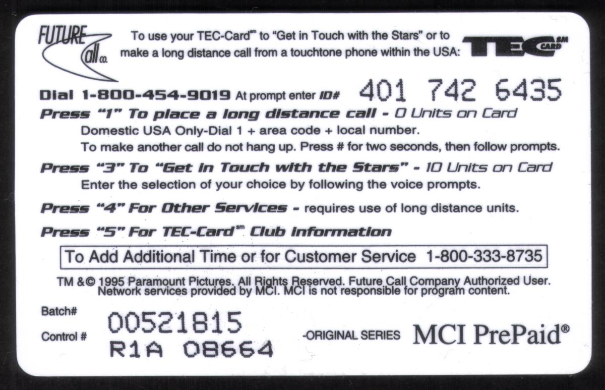 Since we have the world's largest inventory of USA phonecards for collectors, you will not necessarily receive the identical serial/batch/PIN number that we have scanned/pictured.