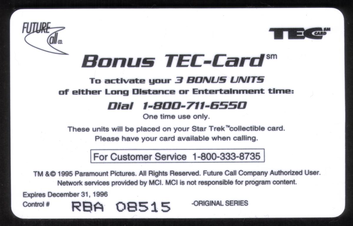 Set of Star Trek original series-themed cards featuring USS Enterprise, Starfleet emblem, and space scenes, with prepaid call time and collectible details. |