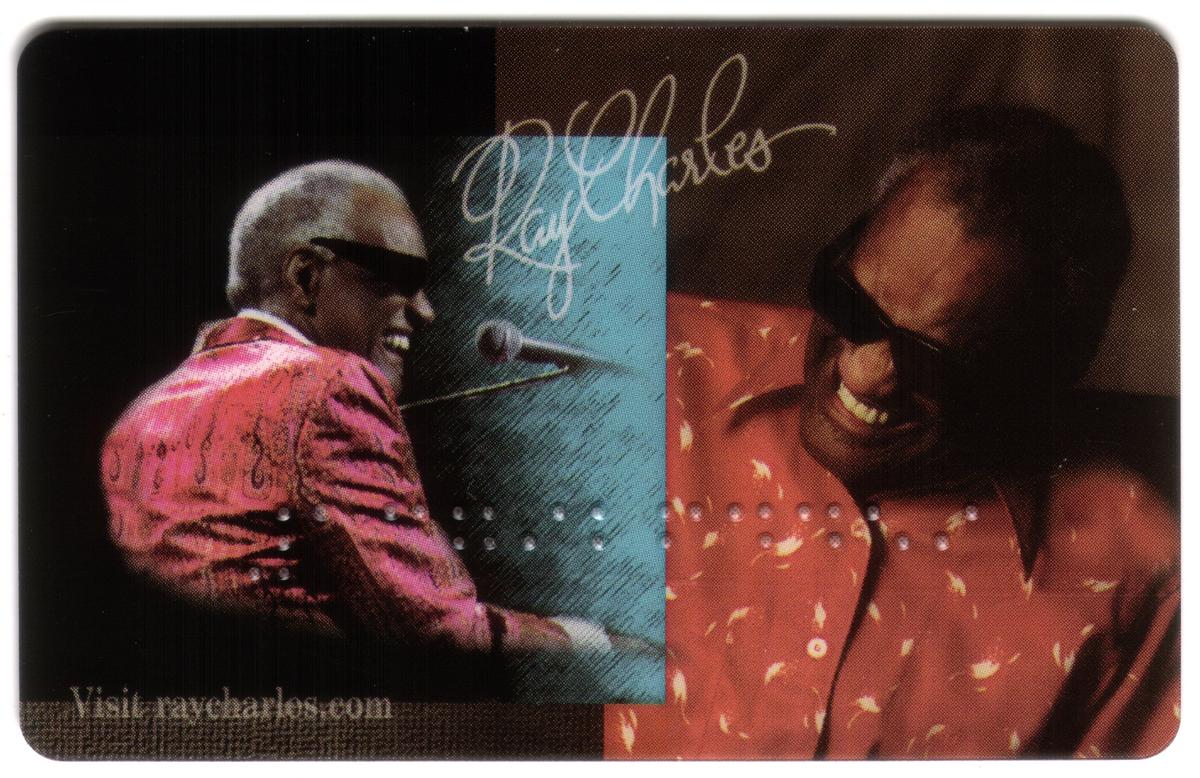 Overall, this phone card is a collectible item that honors Ray Charles, celebrating his role in music history while also advancing inclusive technology through its Braille features. It reflects the intersection of entertainment, telecommunications, and accessibility, marking a unique piece in phone card collections related to famous people and music.