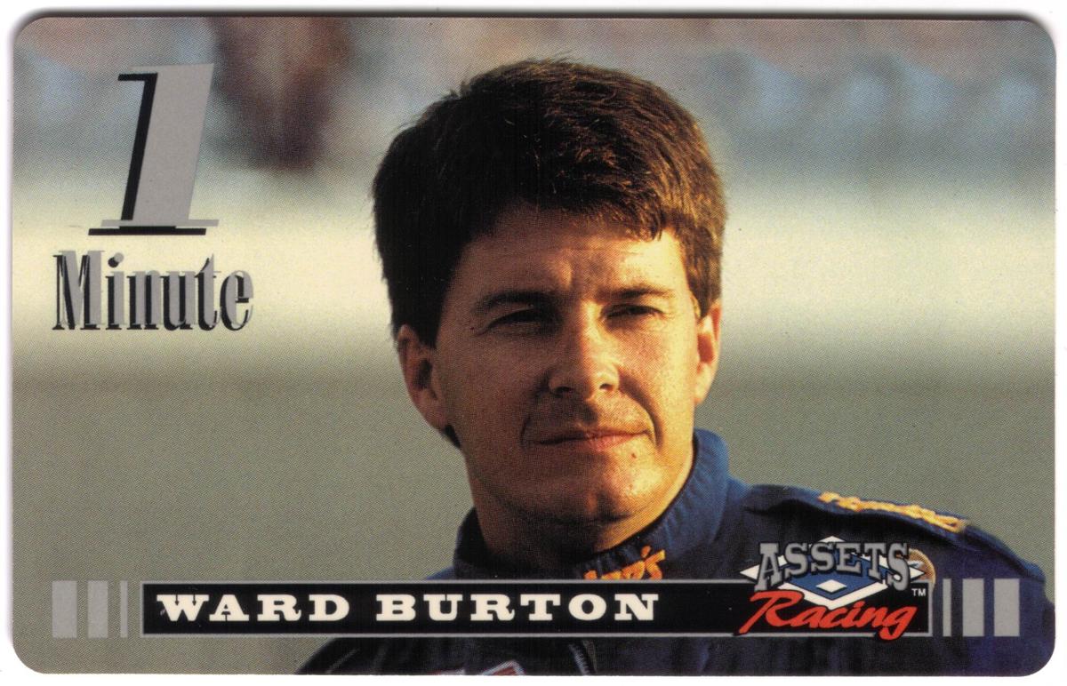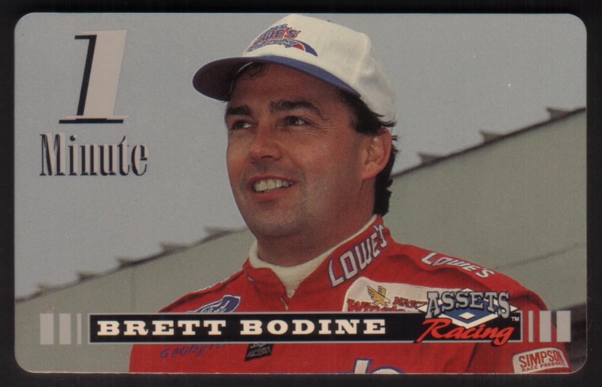 The individual drivers featured on these cards include John Andretti shown wearing a racing helmet with the name "Andretti" on the side; Brett Bodine smiling in his racing suit and a white cap; Geoff Bodine with sunglasses and an "Exide Batteries Racing" cap; and Ward Burton in a blue racing suit. Dale Earnhardt is depicted in his race car with sunglasses and a helmet branded with "Goodwrench Racing." Jeff Gordon, sporting sunglasses, is seen wearing a Dupont racing suit. Ernie Irvan holds a large winner's trophy, donning a Texaco racing outfit and cap surrounded by his team and supporters.