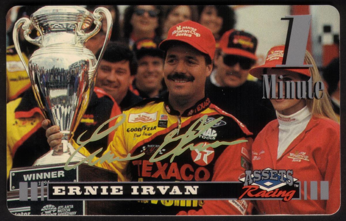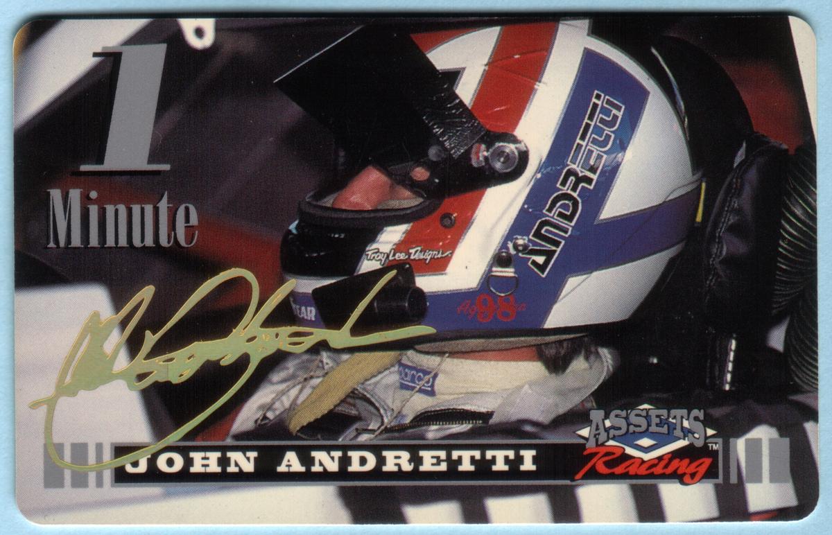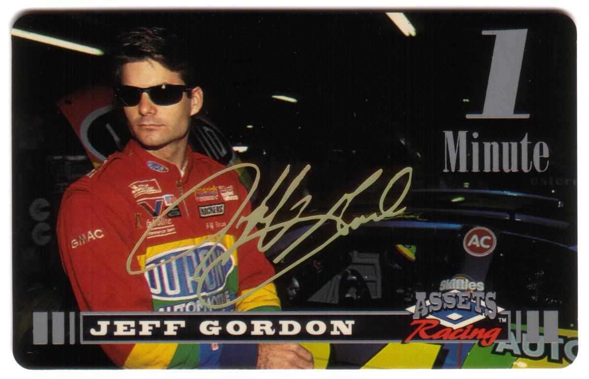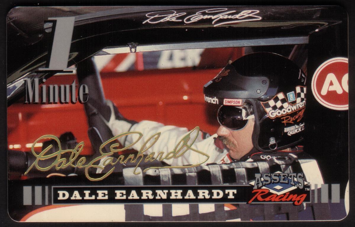 This is a complete set of 20 different collectible phone cards from the "Assets Racing 1995: 1 Min Cards" series featuring printed signatures of famous NASCAR drivers. Each card prominently displays a full-color photographic portrait of a different driver with their printed signature across the image. The cards have a "1 Minute" label in large font in the upper left corner and the "Assets Racing" logo in the lower right. Each card includes the name of the driver in bold white text on a black banner near the bottom of the card.