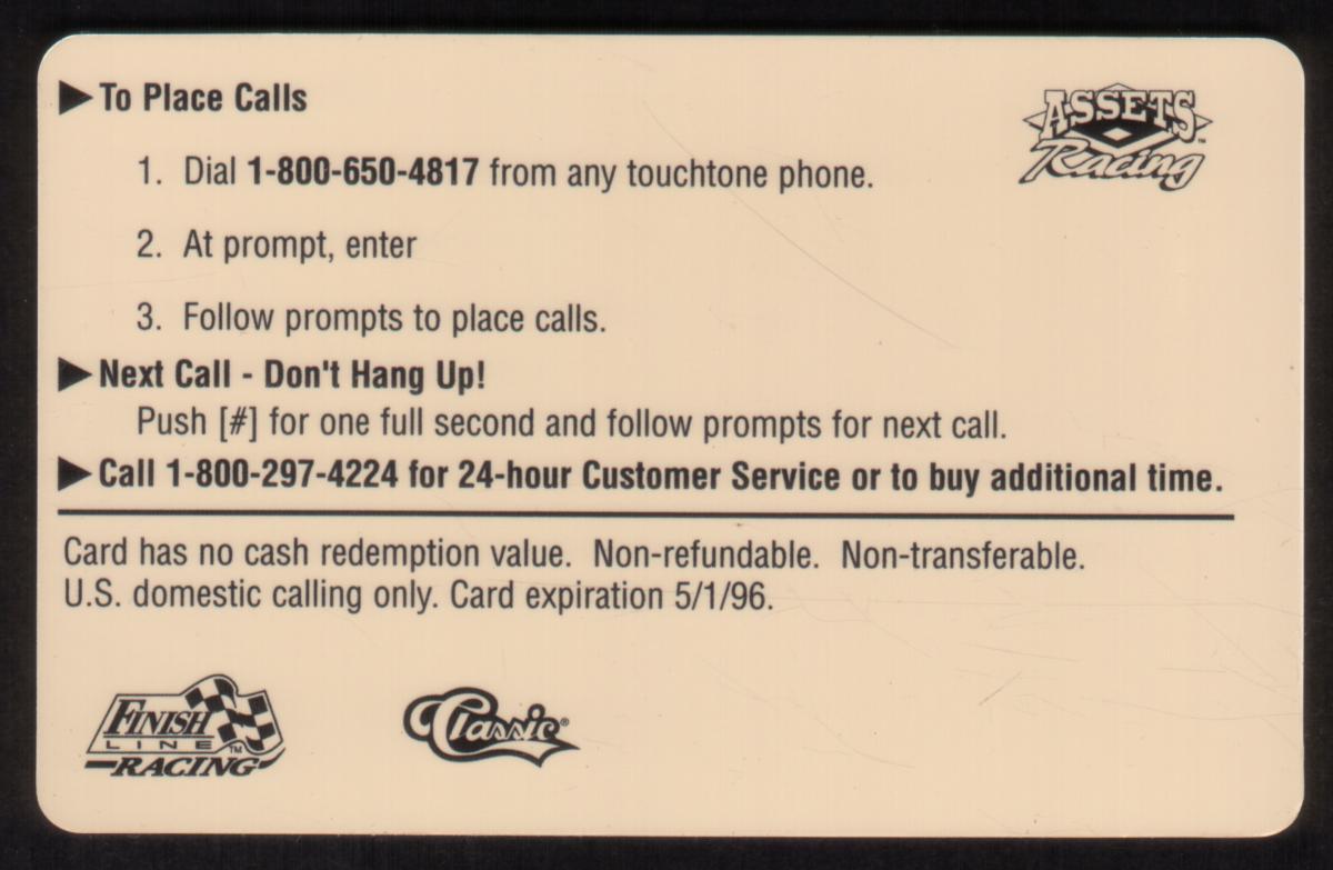 This card is part of the Assets Racing 1995 series issued by Finish Line Racing and prominently showcases corporate trademarks and brand names like Budweiser, DuPont, and DieHard, as noted in the card’s keywords. The card represents the intersection of NASCAR, corporate sponsorship, and collectible memorabilia from the 1995 racing season.