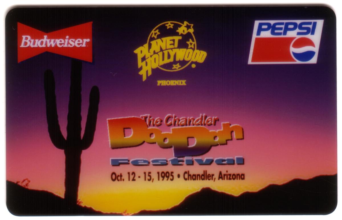 The card’s design clearly links important brand names—Pepsi, Budweiser, and Planet Hollywood—with the regional festival of Chandler, Arizona. The bold, colorful text for "The Chandler Doodah Festival" along with the event date and location highlights the collectible’s commemorative purpose tied to this local cultural celebration.