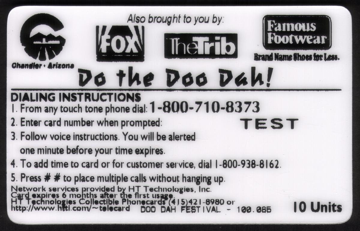 Vintage 1990s Chandler Arizona festival phone card featuring desert sunset, saguaro cactus, Planet Hollywood logo, event details, and brand logos. |