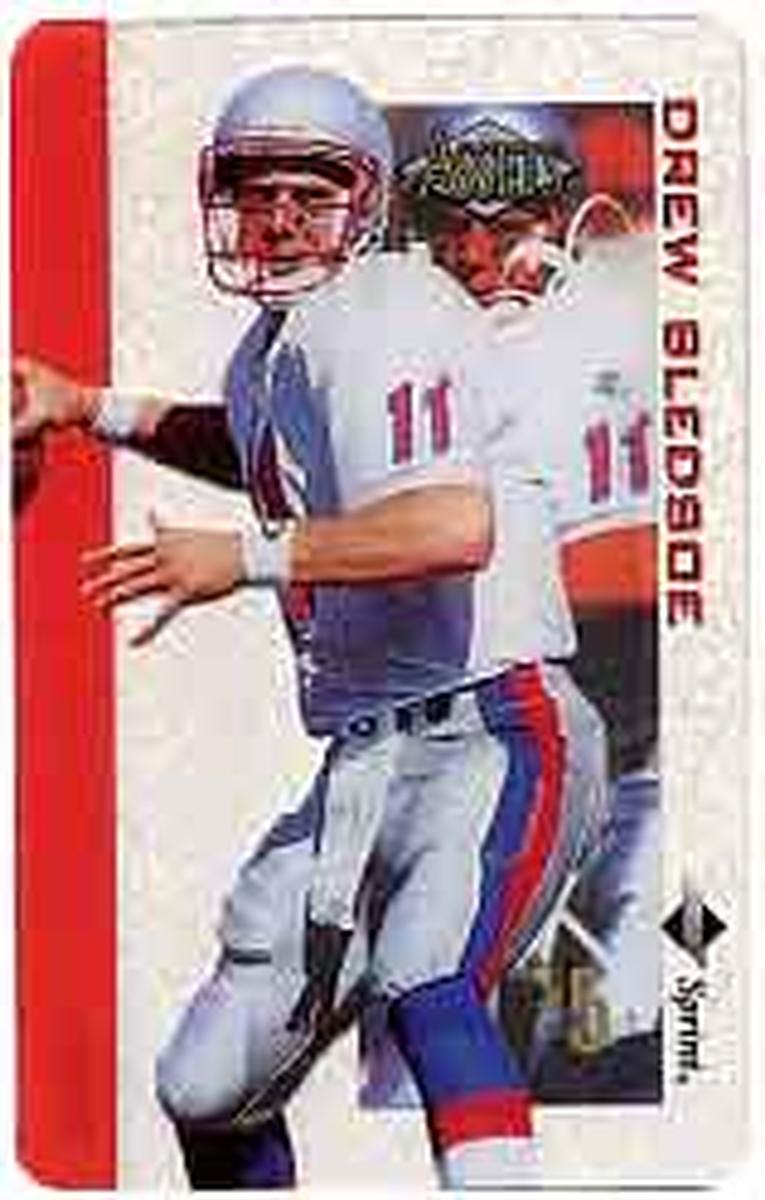 Produced by The Score Board Inc., this card belongs to the Assets '96 set, which is known for showcasing football players. The card combines collectible appeal with authentic NFL branding, making it a valuable item for sports memorabilia collectors, especially those focused on NFL history and Drew Bledsoe’s career.