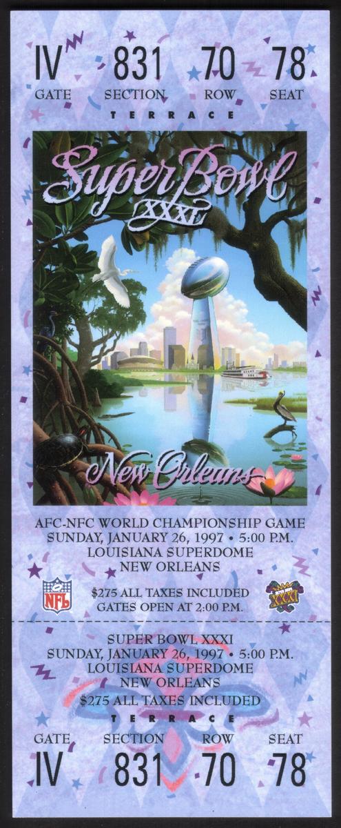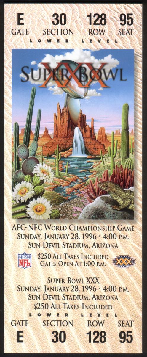 This collection features a series of 32 Super Bowl ticket replicas representing the National Football League’s championship games from the very first AFL-NFL World Championship Game in 1967 through Super Bowl XXXII held in 1998. Each ticket is a colorful, detailed representation of the historic games, including accurate dates, locations, seating information, and ticket prices.
