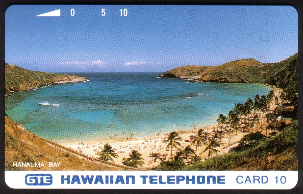 Overall, this collectible phone card emphasizes travel, beaches, and tropical Hawaiian scenery with its detailed photographic representation of Hanauma Bay, palm trees, and surrounding mountains. It is sold exclusively in Hawaii, making it a unique souvenir highlighting one of the state’s most picturesque and popular beach destinations.