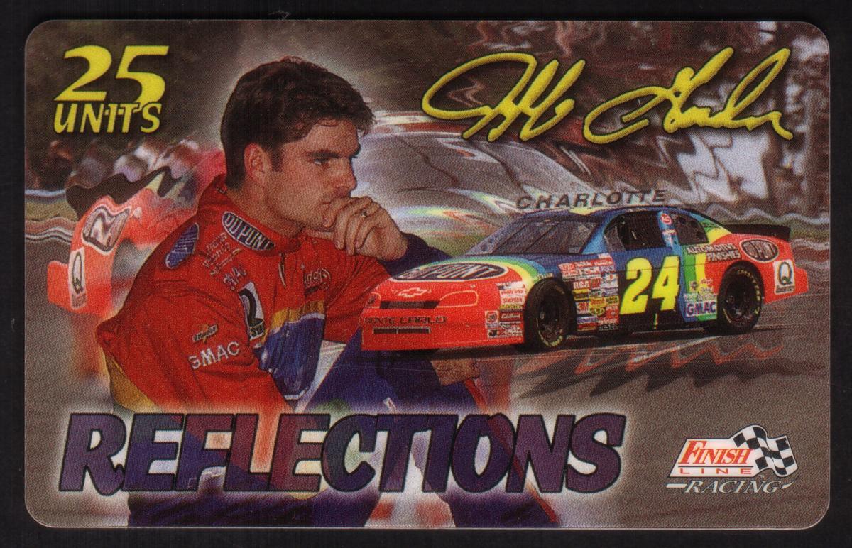 Overall, the card celebrates Jeff Gordon’s legacy in auto racing, combining his image with official NASCAR and Finish Line Racing graphics. It is a collectible item appealing to fans of Jeff Gordon and the sport of NASCAR.