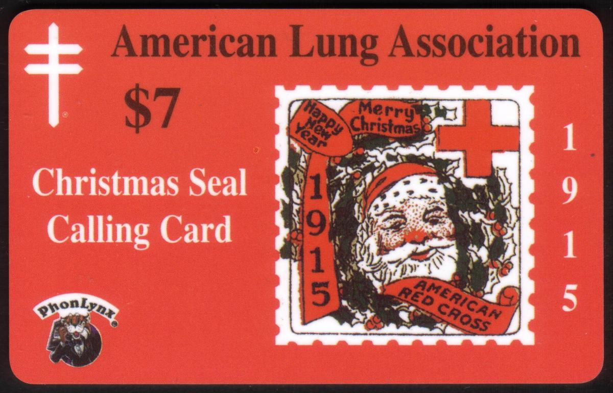 This card combines elements of holiday cheer with the history of charitable stamps, making it relevant for collectors interested in Christmas memorabilia, American Red Cross collectibles, and philanthropic-themed stamps from the early 20th century. The presence of Santa Claus alongside the 1915 American Lung stamp creates a nostalgic connection to the tradition of Christmas seals supporting health-related causes.