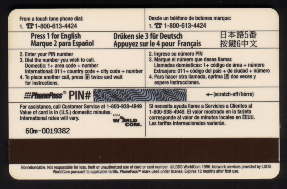 Since we have the world's largest inventory of USA phonecards for collectors, you will not necessarily receive the identical serial/batch/PIN number that we have scanned/pictured.