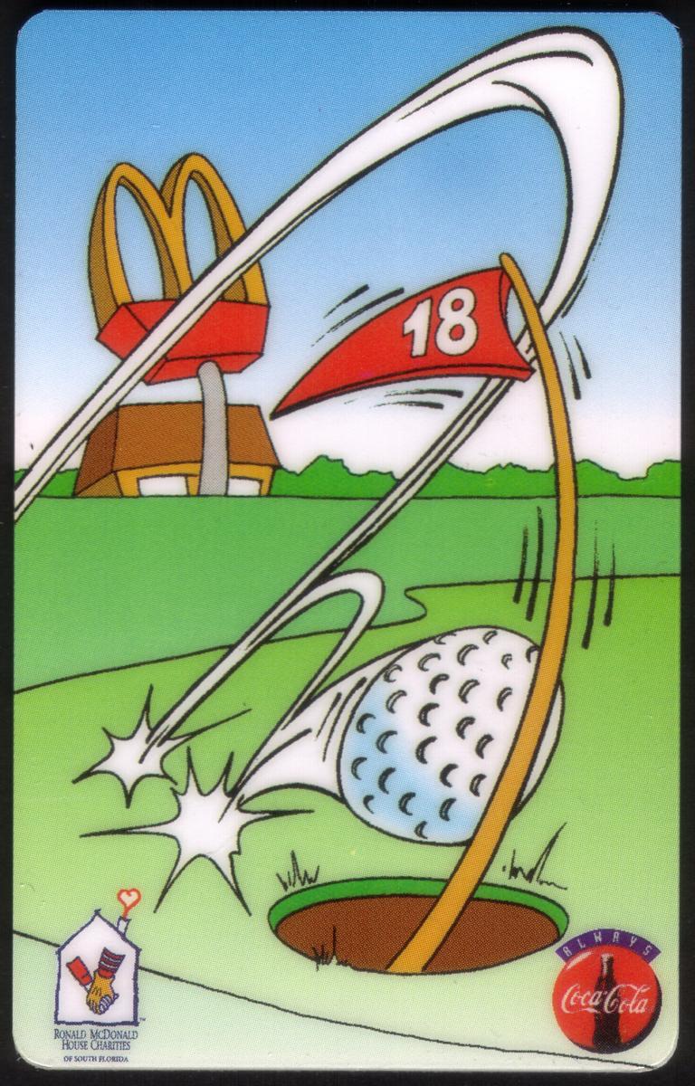 Keywords: Sports: Golf, McDonalds, McDonald's, fast food chains, restaurants, Golden Arches, non profits, children's charities, fundraisers, Coke logos, Coca Cola logos, putting green, coca-cola, ALL THIS ISSUE HAVE TONED REVERSES, Phone Card Management