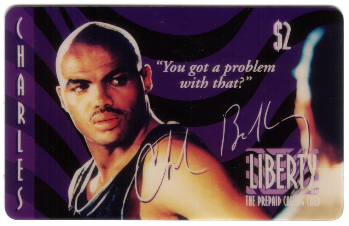 This item is a phone card linked to basketball, focusing on Charles Barkley’s image and legacy in the sport. Its design and text connect directly to Barkley's persona and the basketball world, making it a unique piece for collectors of sports memorabilia related to the NBA and its famous players.