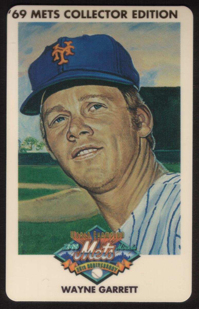 This collectible card features Wayne Garrett, a baseball player from the 1969 New York Mets team. The card commemorates the 25th Anniversary of the 1969 Champion Miracle Mets, celebrating their iconic World Series victory. The card highlights Major League Baseball (MLB) and the sport of baseball, focusing on an important figure from that championship team.