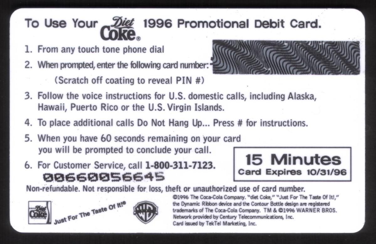 Since we have the world's largest inventory of USA phonecards for collectors, you will not necessarily receive the identical serial/batch/PIN number that we have scanned/pictured.