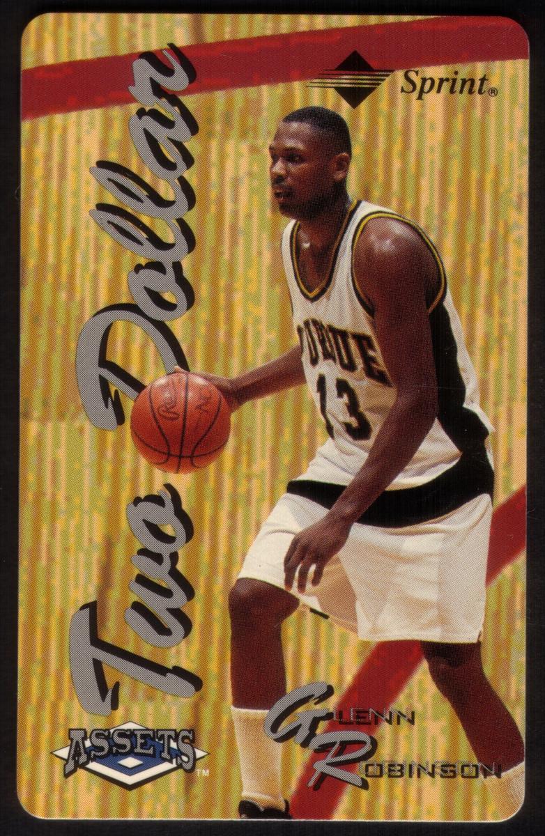 This collectible card features Glenn Robinson, a professional basketball player who played in the NBA. The card is part of the $2. Assets Series #1, issued in 1994 and dated 12/01/95. Glenn Robinson is depicted in a basketball setting wearing his uniform, emphasizing his association with the sport and the National Basketball Association.