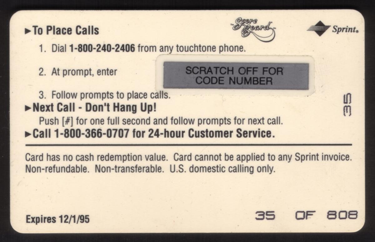 Since we have the world's largest inventory of USA phonecards for collectors, you will not necessarily receive the identical serial/batch/PIN number that we have scanned/pictured.