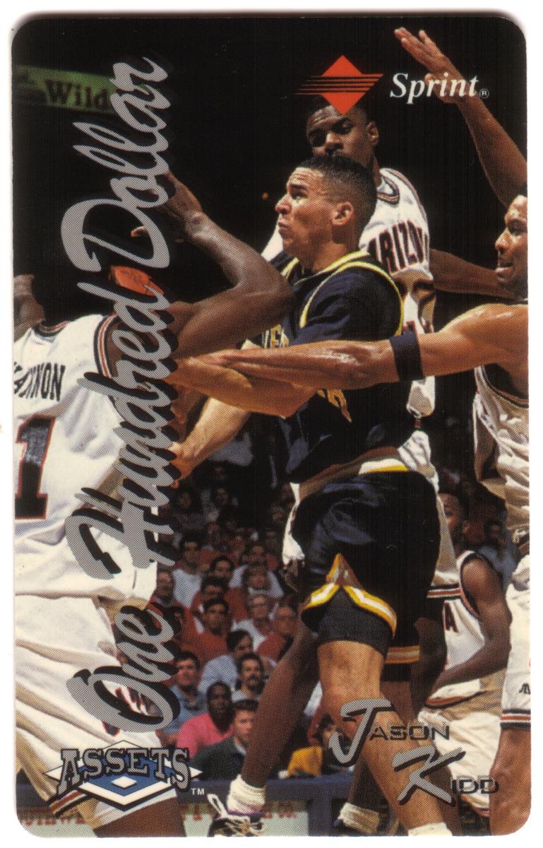 This collectible card features NBA player Jason Kidd, a professional basketball athlete known for his career in the National Basketball Association. The card is marked with the date "12/01/95" and is identified as part of the $100 Assets Series #1 from 1994. The issuing entity on the card is The Score Board Inc., a company known for producing sports memorabilia.