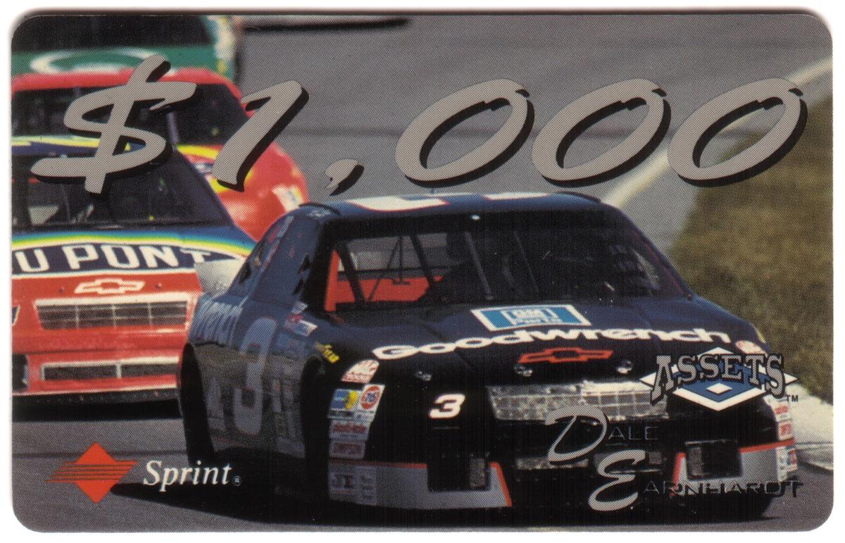 The card is part of the Assets Series #1, released in 1994 by The Score Board Inc. It is associated with Jeff Gordon and Dale Earnhardt and appears to commemorate their achievements and rivalry within the NASCAR circuit. The top of the card includes text referencing "depont $1000," which connects it to Jeff Gordon’s sponsorship and racing career during that period. Additional branding and the expiration date of December 1, 1995, are also visible.