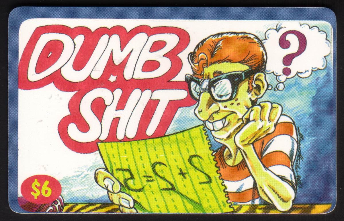 This complete set of 14 collectible phone cards from the "Dung Series: Artistic 'SHIT' Cards" by PhonLynx features bold, cartoon-style artwork paired with provocative titles. Each card visually interprets a different phrase or idiomatic expression involving the word "shit," presented in bright colors and exaggerated caricatures. The cards have a consistent retail price of $6 printed on each front design.