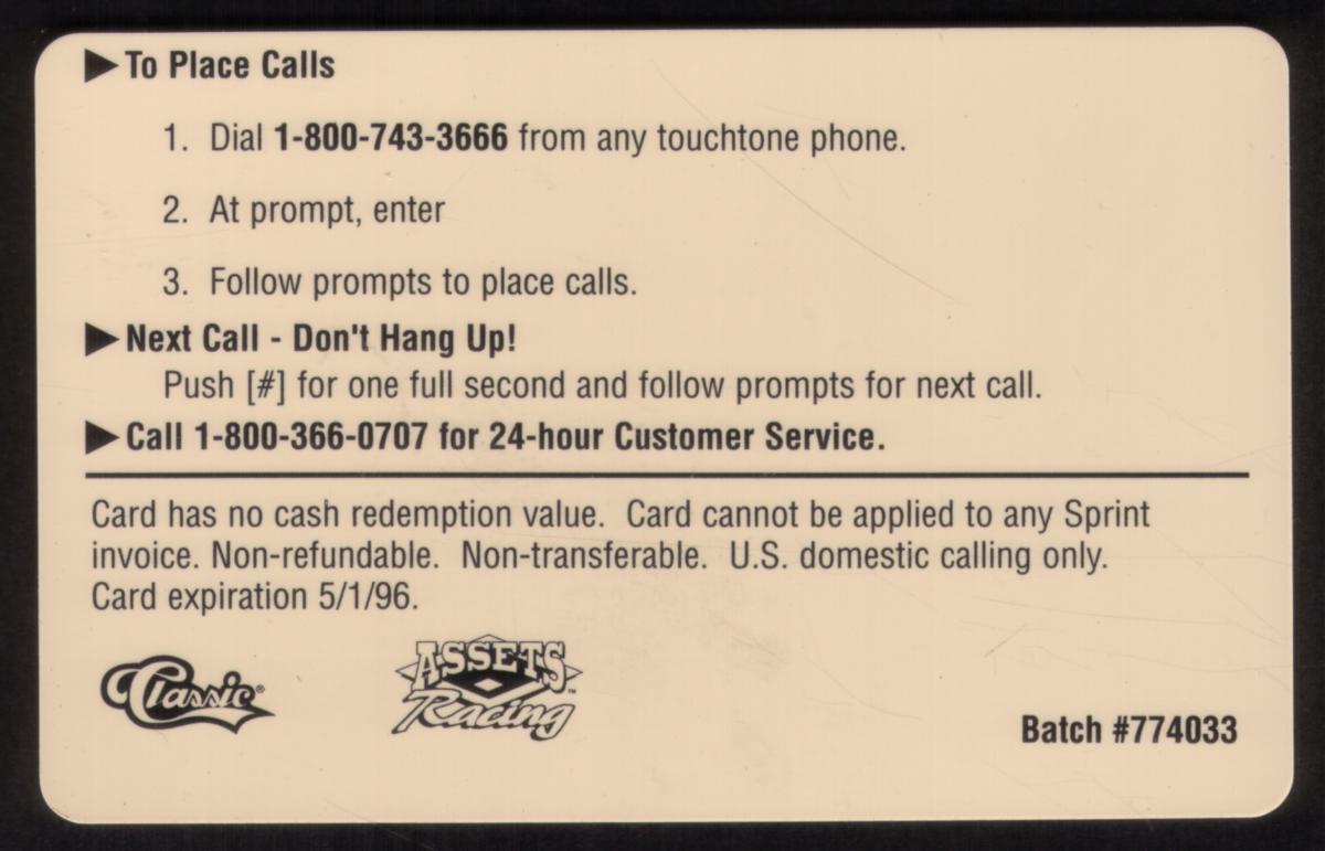 Since we have the world's largest inventory of USA phonecards for collectors, you will not necessarily receive the identical serial/batch/PIN number that we have scanned/pictured.