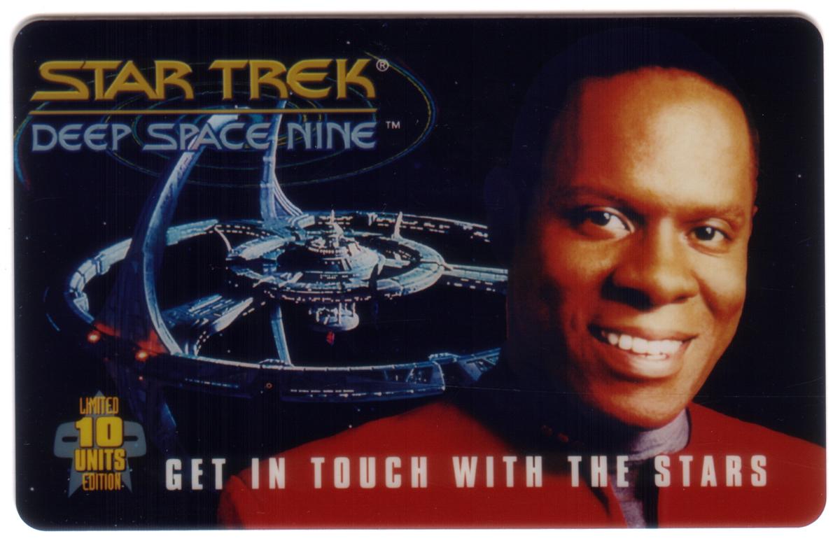 Overall, this phone card serves as a collectible item celebrating one of the iconic characters and the distinctive sci-fi franchise of "Star Trek: Deep Space Nine," focusing on Captain Sisko and the show’s futuristic setting.