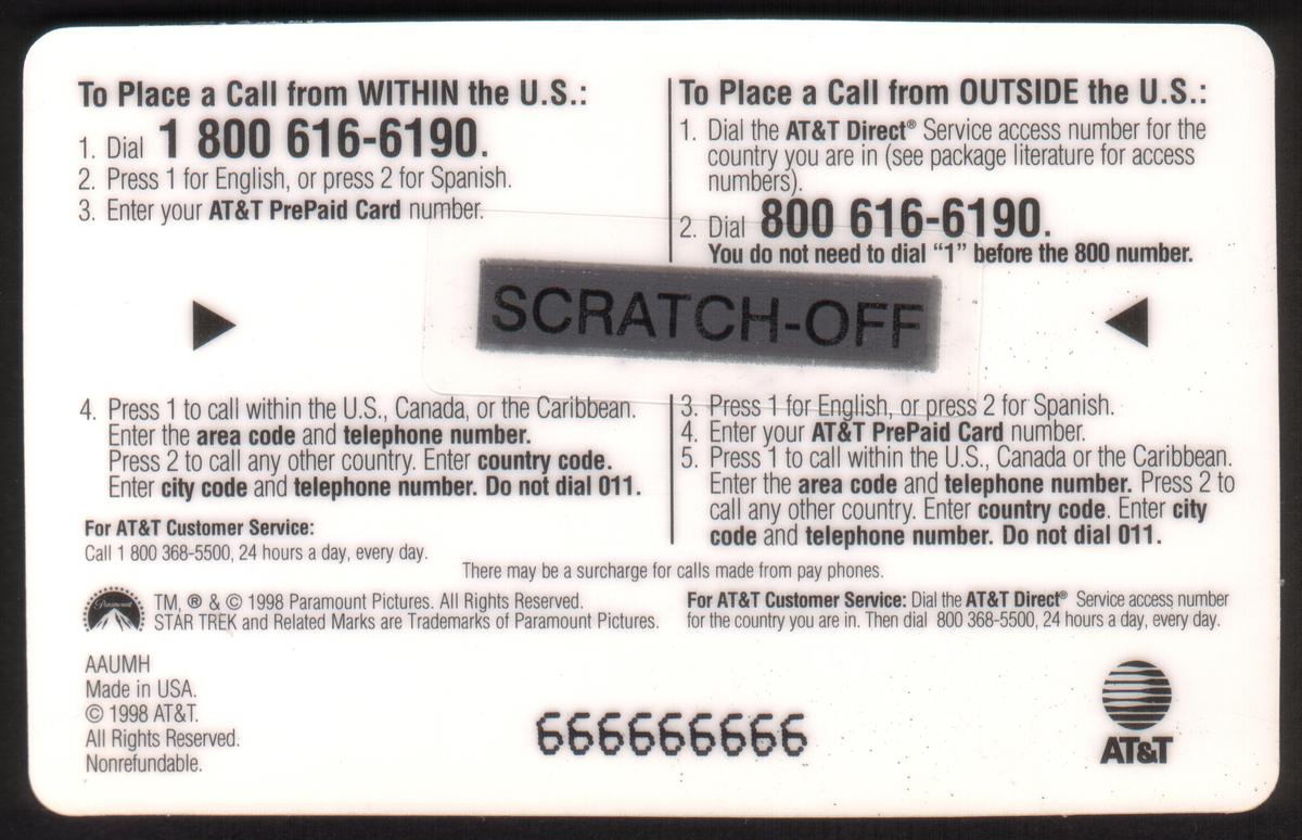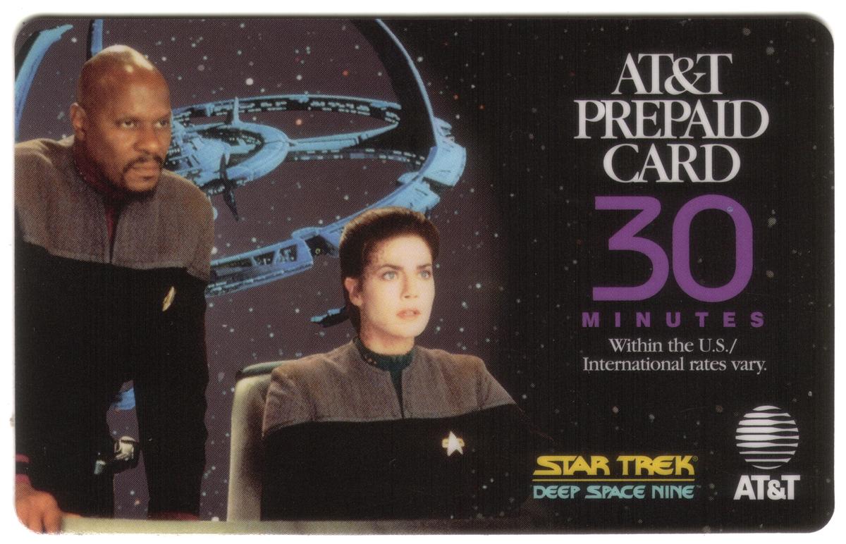 This item directly links to the Star Trek: Deep Space Nine television show, showcasing iconic characters and space station imagery to appeal to fans of the sci-fi series. It is a prepaid phone card issued by AT&T with official branding.