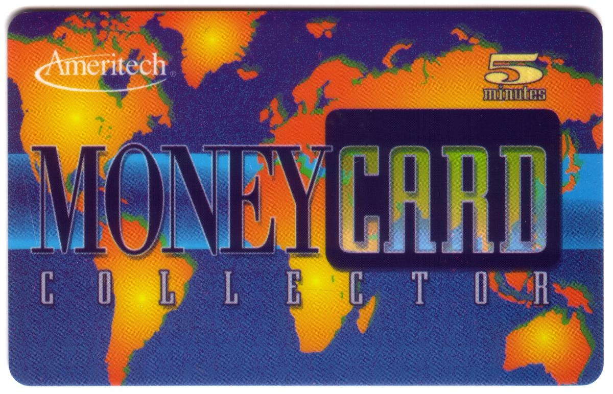 In the upper area of the card, the MoneyCard Collector Magazine logo is set against the multicolored world map background. The logo's typography and layout stand out, enhancing the card's promotional nature. The bottom right corner includes the name Ameritech, indicating a connection to the corporation or brand involved in this promotional item.