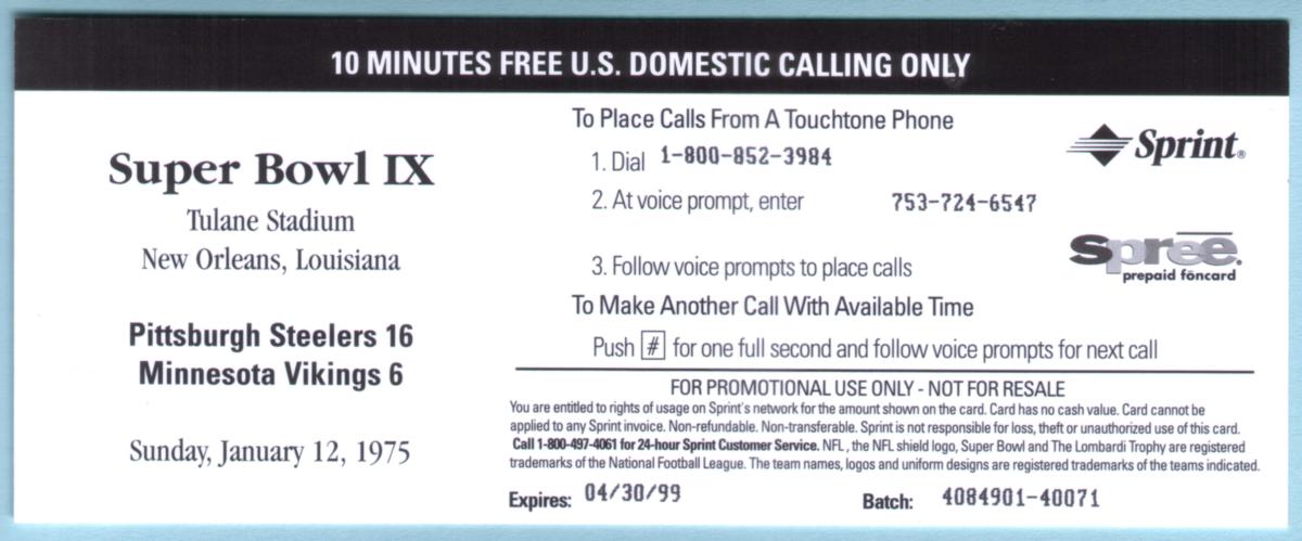 Since we have the world's largest inventory of USA phonecards for collectors, you will not necessarily receive the identical serial/batch/PIN number that we have scanned/pictured.