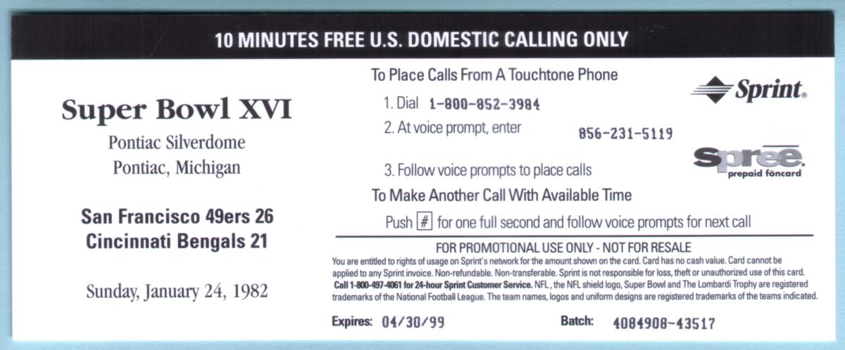Since we have the world's largest inventory of USA phonecards for collectors, you will not necessarily receive the identical serial/batch/PIN number that we have scanned/pictured.