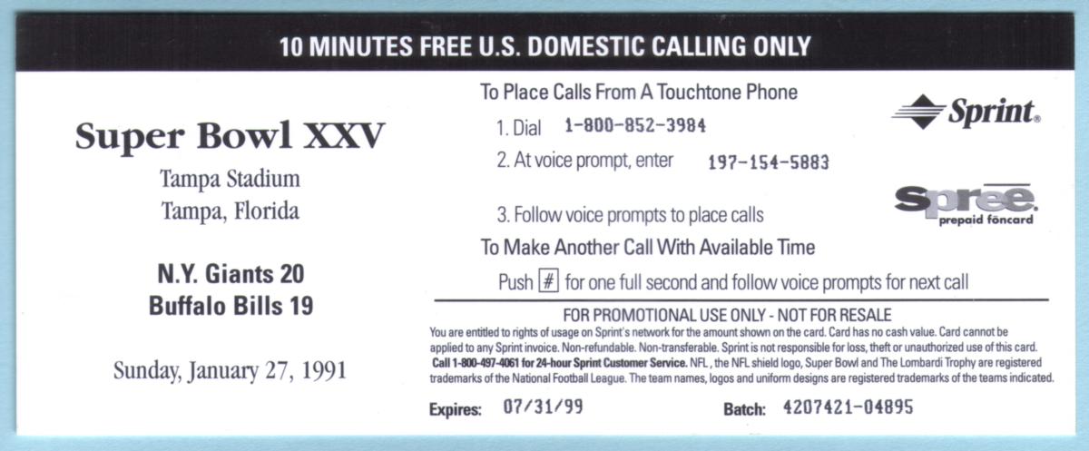 Since we have the world's largest inventory of USA phonecards for collectors, you will not necessarily receive the identical serial/batch/PIN number that we have scanned/pictured.