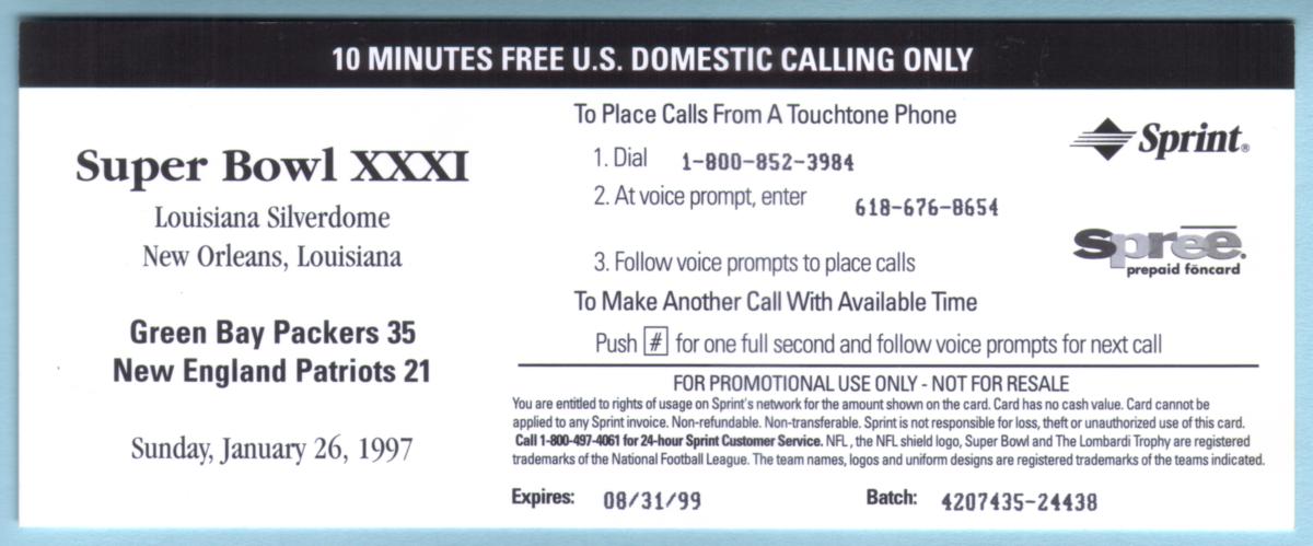 Keywords: Sports: Footballs, football birds, NFL, boats, National Football League, turtles, skylines, artistic, Americana, louisiana superdome new orleans world championship afc-nfc flowers 1997, super bowl ticket replica, super bowl 31, Sprint