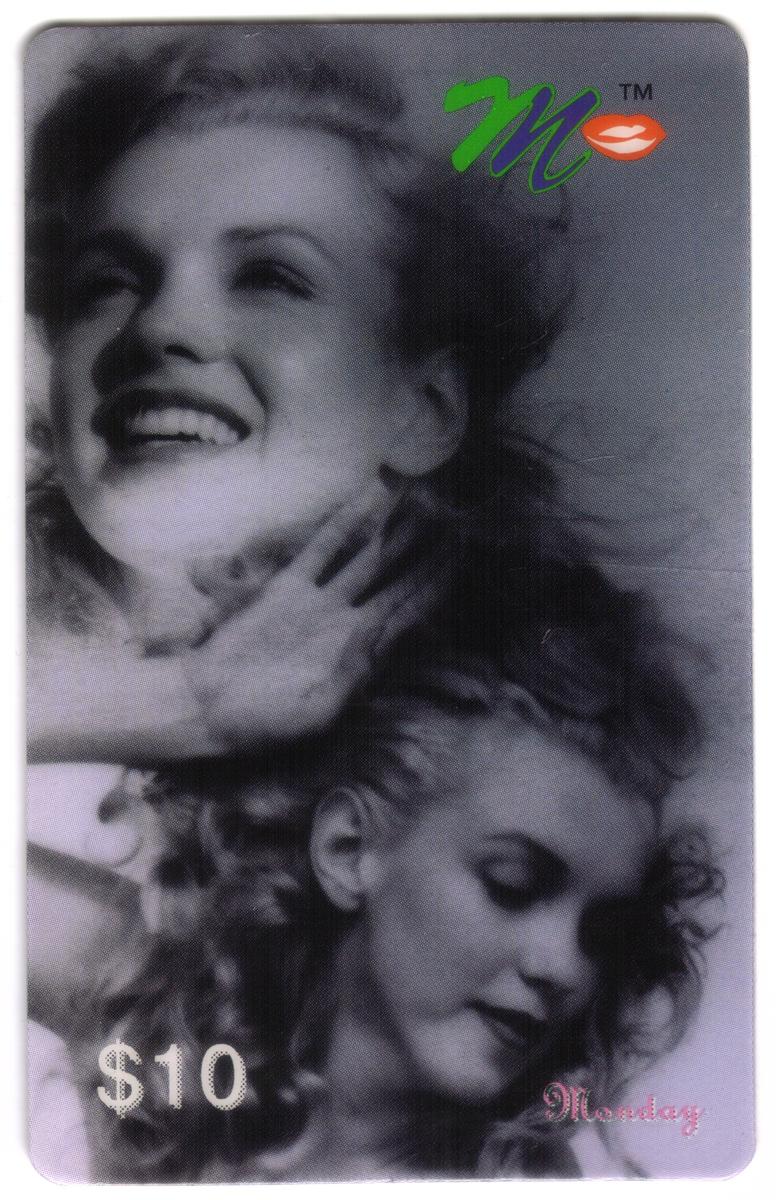 This collectible phone card features two combined black and white close-up photographs of Marilyn Monroe, also known as Norma Jeane. The images capture the iconic Hollywood actress’s face from slightly different angles, highlighting her classic beauty and glamorous style. Marilyn Monroe’s name appears at the bottom left of the card in a clear, bold font.