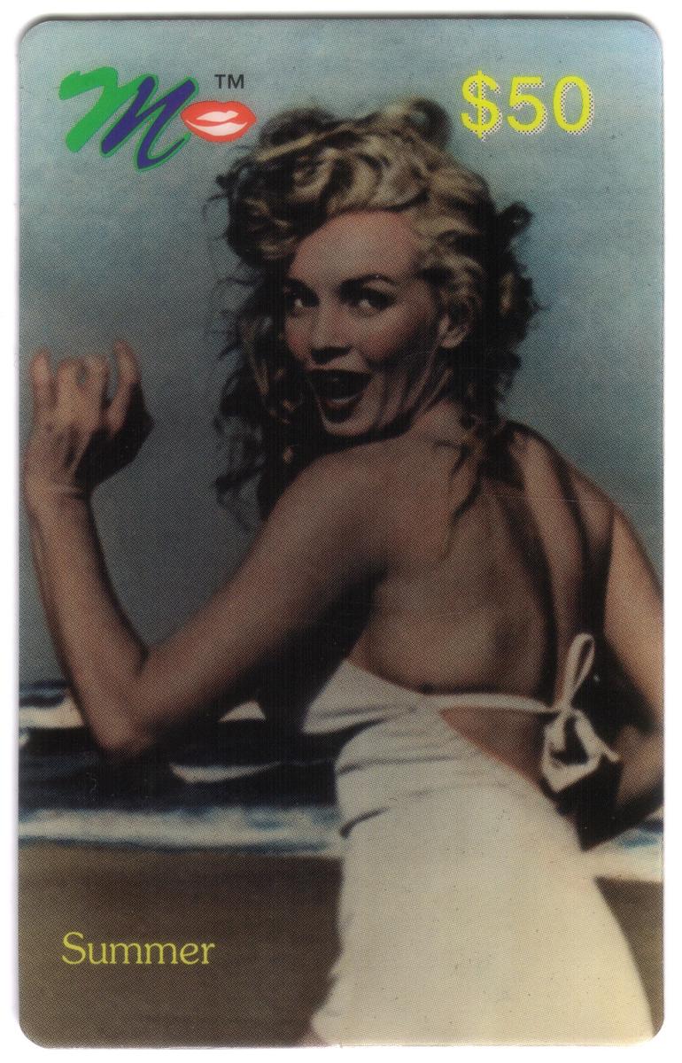Marilyn Monroe $50 Summer phone card featuring beach scene, iconic image, vibrant design, and nostalgic Hollywood glamour, perfect for collectors and fans. |