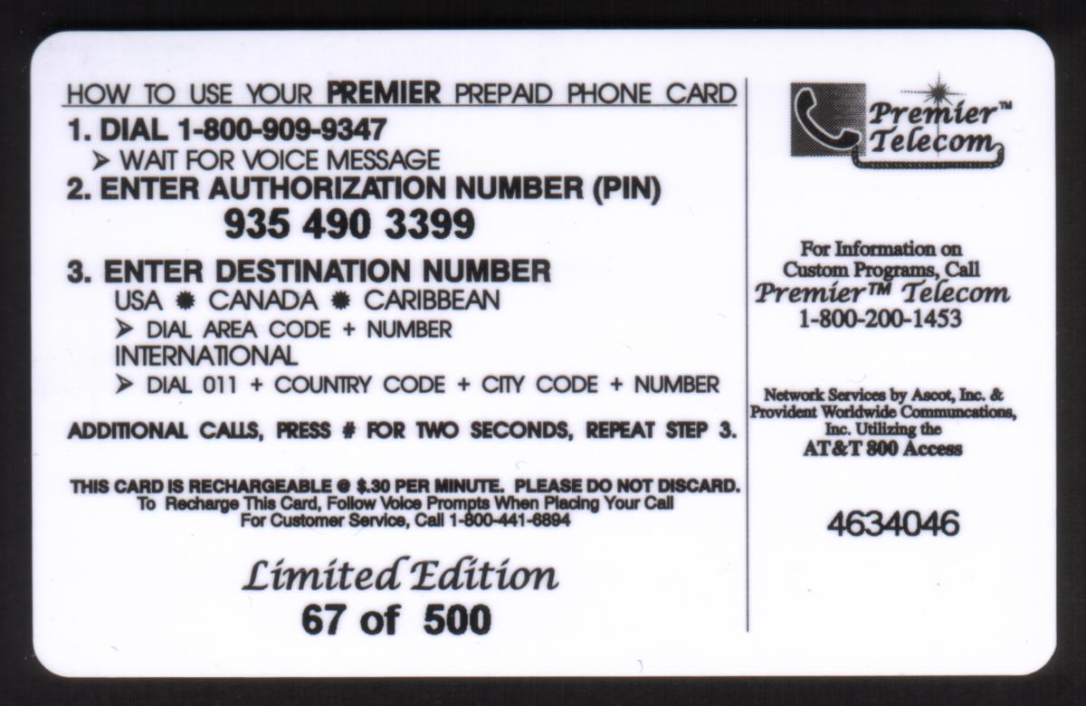 Since we have the world's largest inventory of USA phonecards for collectors, you will not necessarily receive the identical serial/batch/PIN number that we have scanned/pictured.