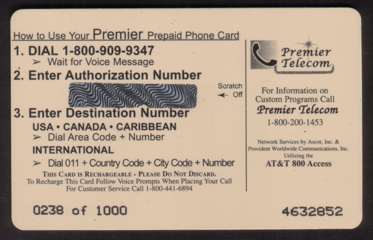 Since we have the world's largest inventory of USA phonecards for collectors, you will not necessarily receive the identical serial/batch/PIN number that we have scanned/pictured.