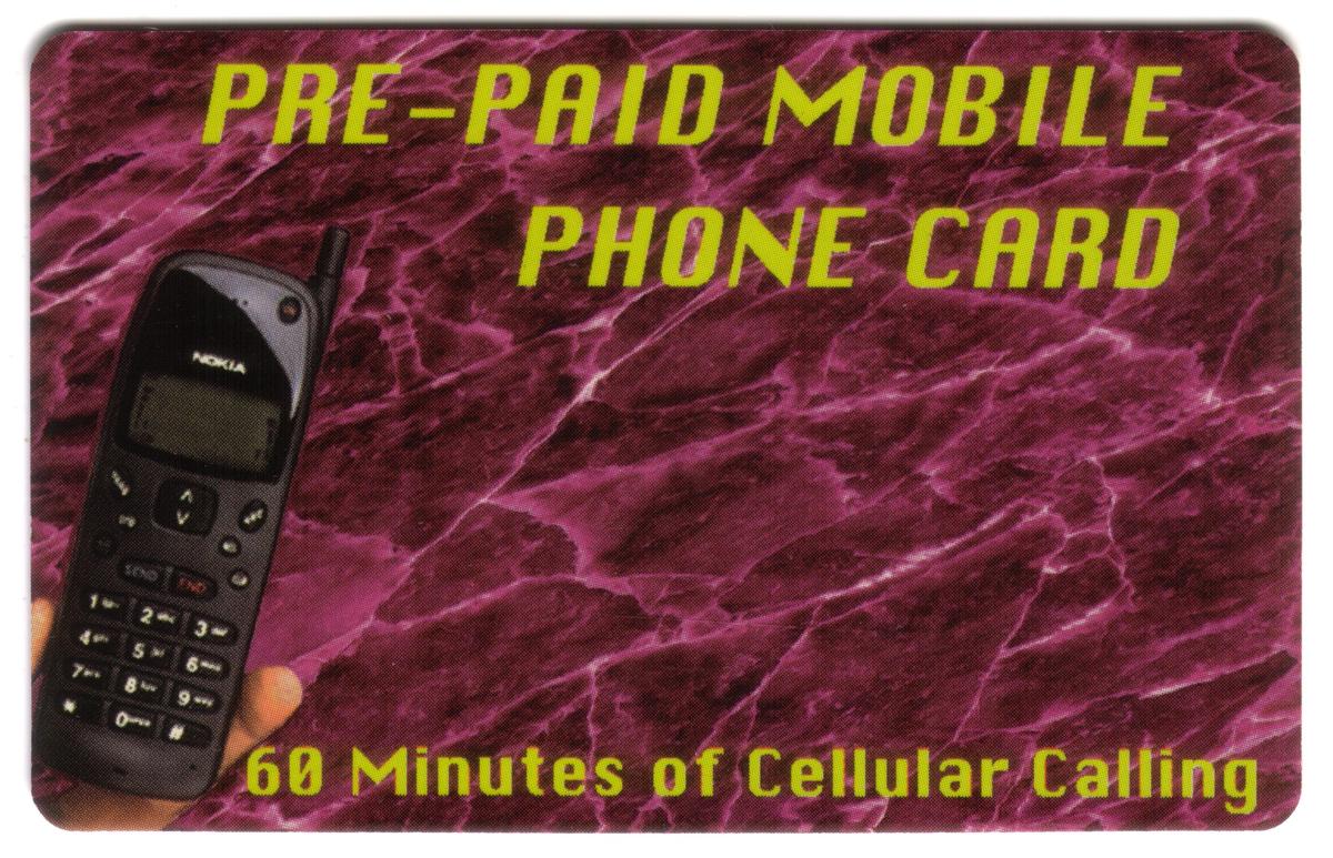 This card functions as a prepaid cellular phone calling card, usable for 60 minutes of mobile telephone service, featuring the well-known Nokia brand mobile phone image to emphasize its telecommunications use.