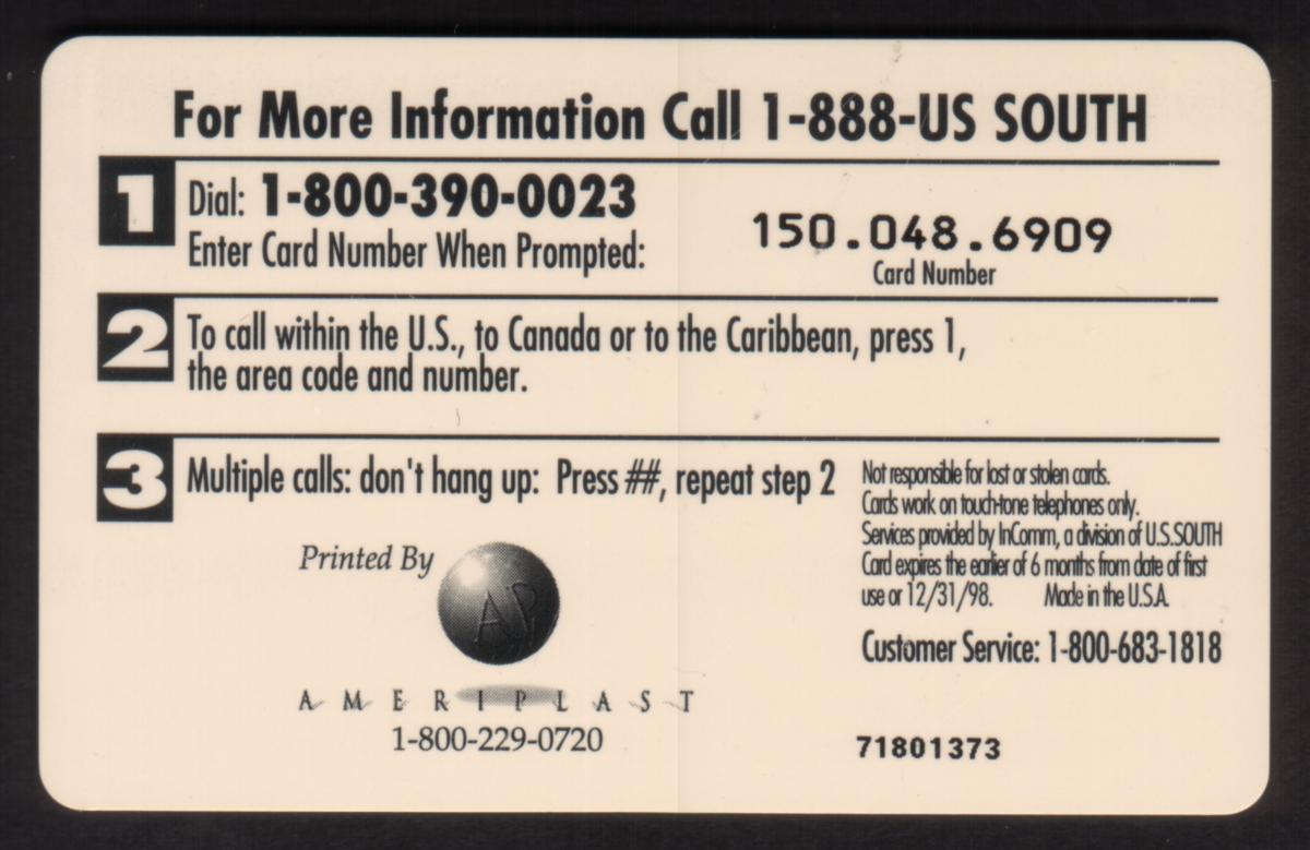 Since we have the world's largest inventory of USA phonecards for collectors, you will not necessarily receive the identical serial/batch/PIN number that we have scanned/pictured.