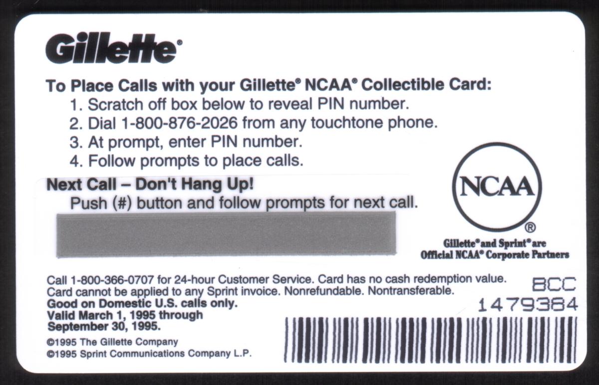 This phone card is part of promotional materials related to NCAA basketball, highlighting women's basketball within the Gillette NCAA Gillette 1995 series. The design combines strong use of abstract and bright colors to create an energetic, sports-themed collectible.