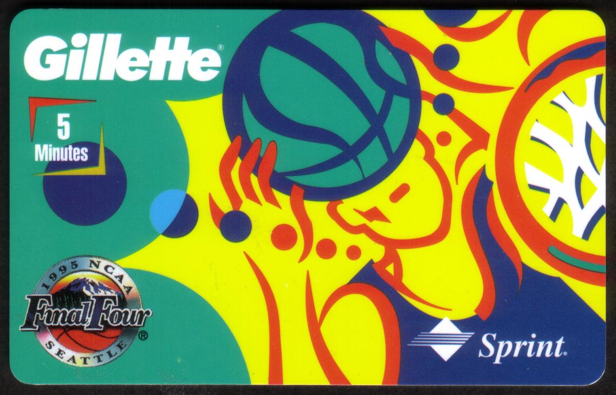 No other logos or text are visible besides those mentioned. The card represents a promotional item connected to NCAA basketball and Gillette branding from 1995, with clear ties to men’s basketball through the depiction of the dunking player and the related text references.