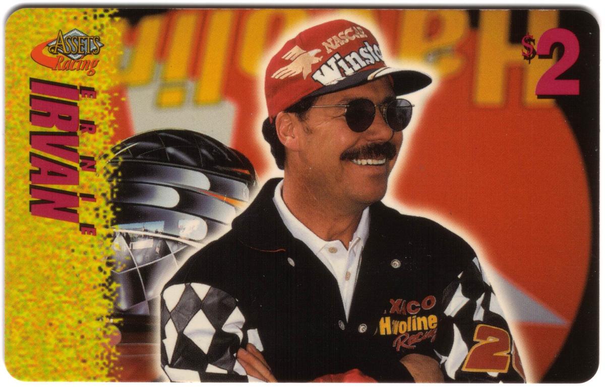 Overall, the card commemorates Ernie Irvan’s participation in the Winston Cup series, capturing a moment tied to his racing career and the mid-1990s NASCAR scene. This collectible holds value for fans of NASCAR, auto racing memorabilia, and brand-related promotional items from that period.