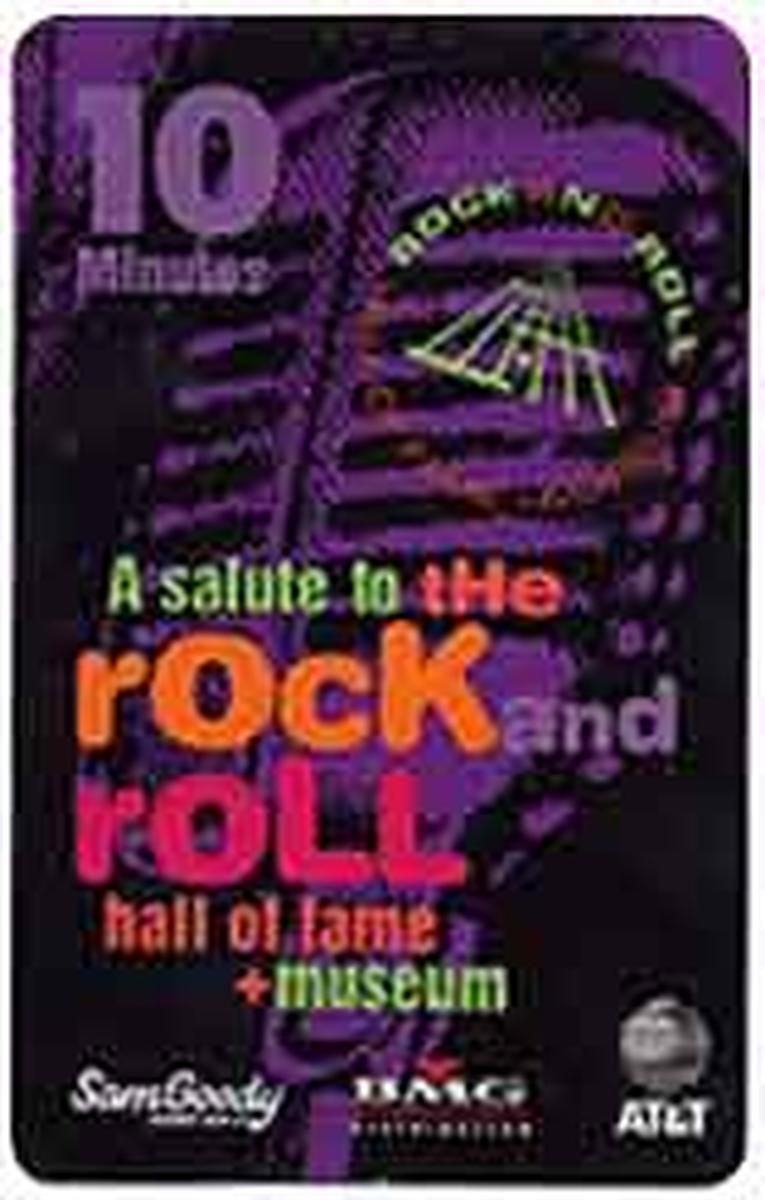 Overall, this collectible card celebrates rock and roll music history and honors the artists recognized by the Rock & Roll Hall of Fame and Museum. Its design and featured logos make it a promotional phone card focused on musical artists and entertainment, combining branding from notable companies within the music and telecommunication sectors.
